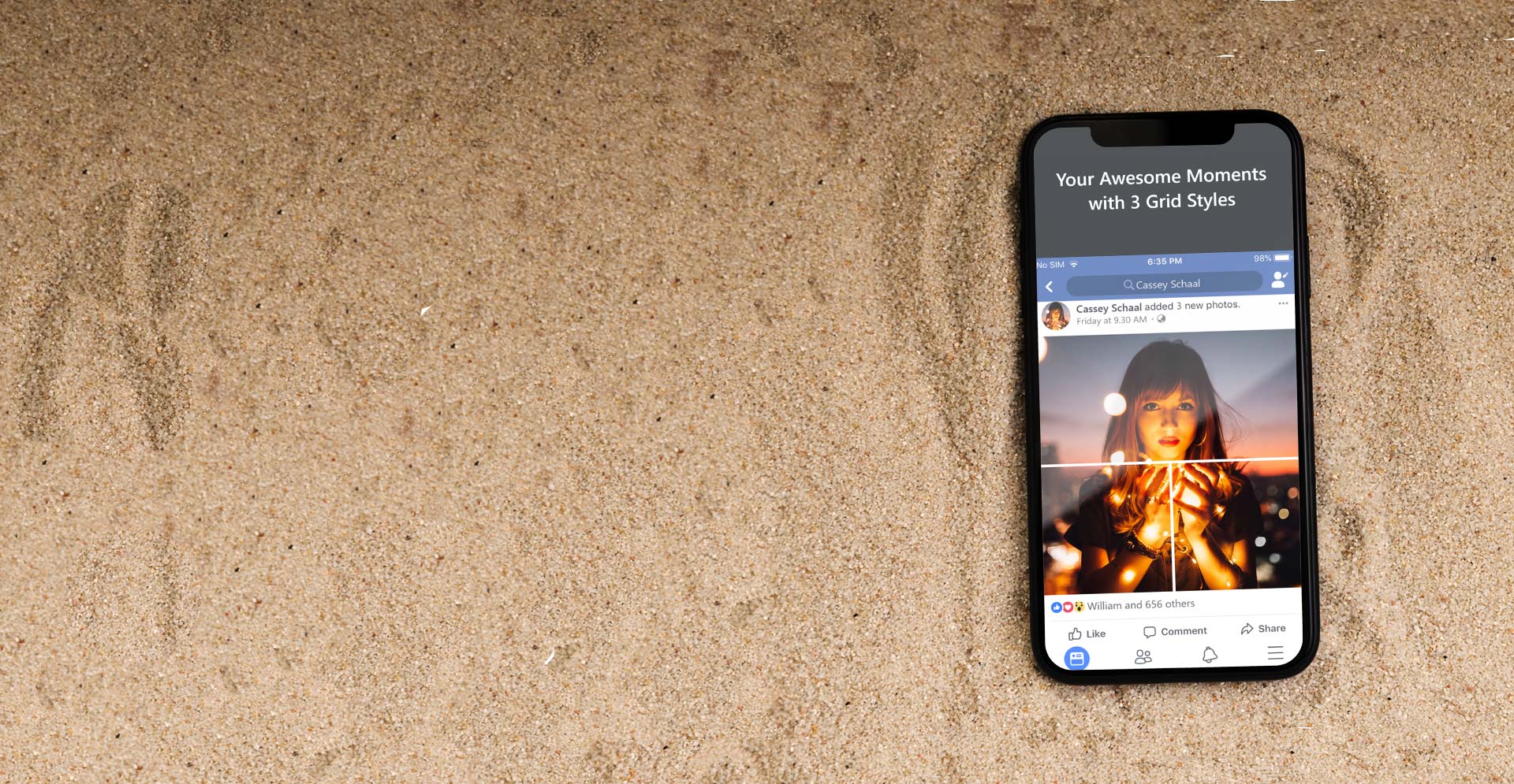 Grid-Style Photo Splitting Automatically splits a photo into multiple parts to form a large visual collage on Facebook—perfect for standout profile designs.